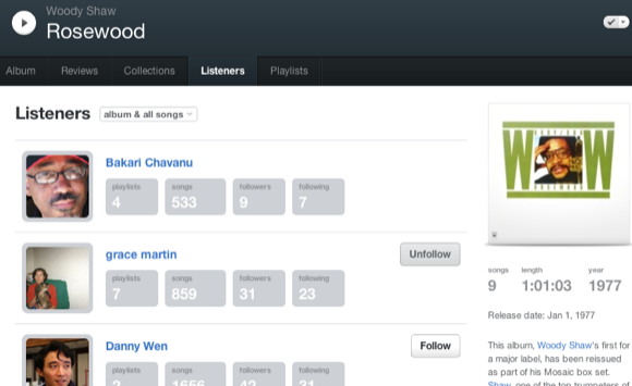 In addition, Rdio provides New Releases and Top Charts for helping members find new music. I also like that when you link to an album's page, you can link and see which members have listened to that album. This is an awesome way to discover and make contacts on the site.